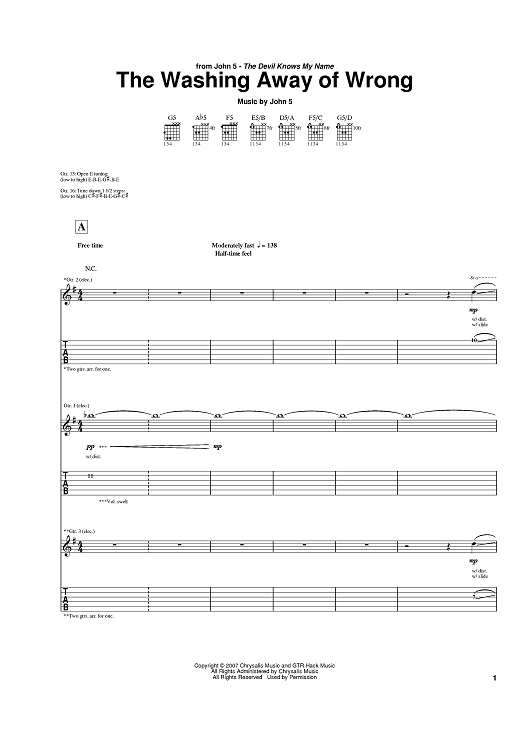Digital Sheet Music for The Washing Away Of Wrong by John 5 scored for Guitar Tab; id:398387