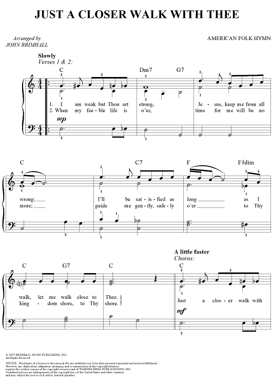 "Just a Closer Walk With Thee" Sheet Music by Traditional