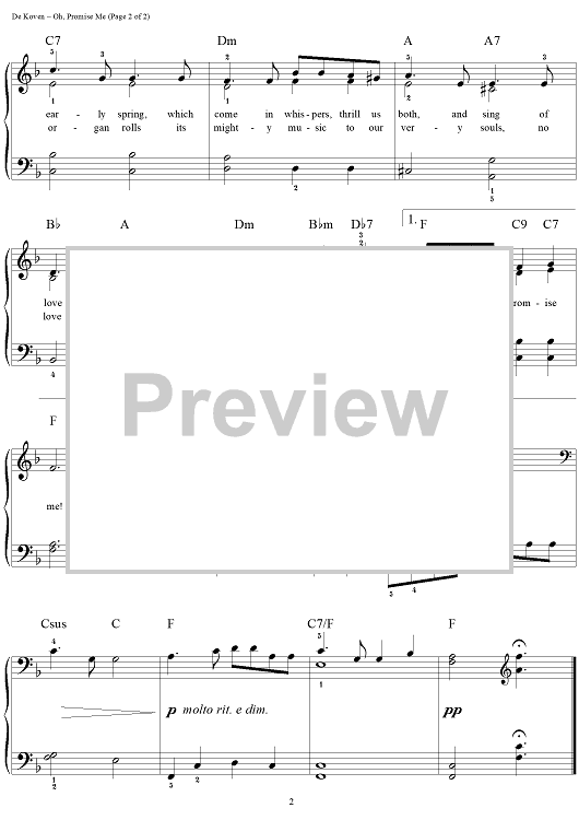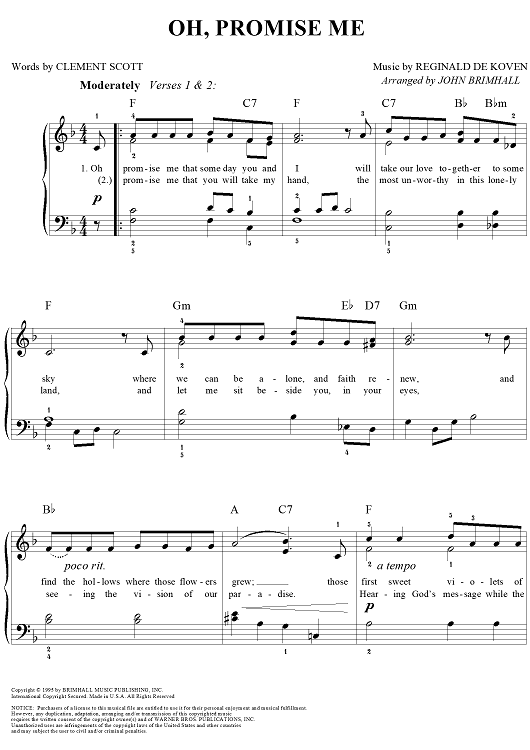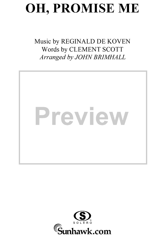Digital Sheet Music for Oh, Promise Me by Clement Scott, John Brimhall, Reginald DeKoven scored for Piano/Vocal/Chords; id:250235