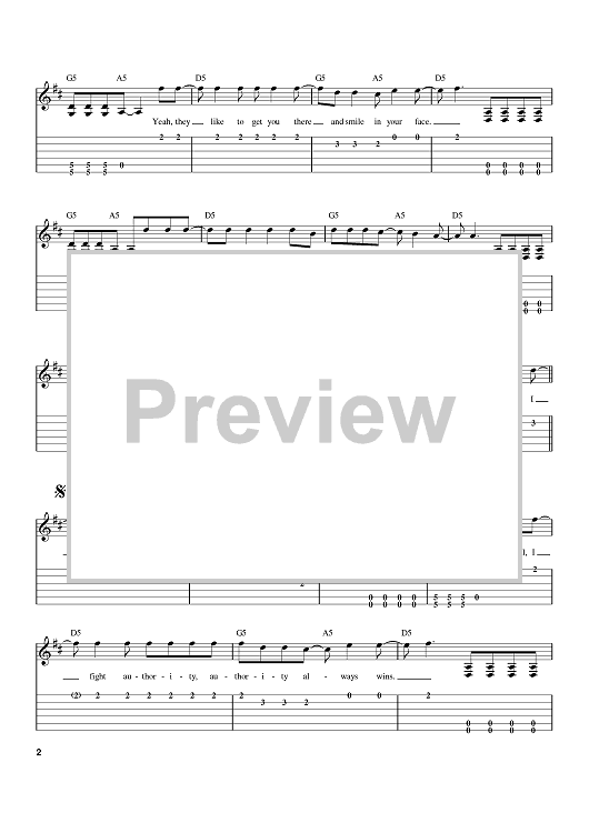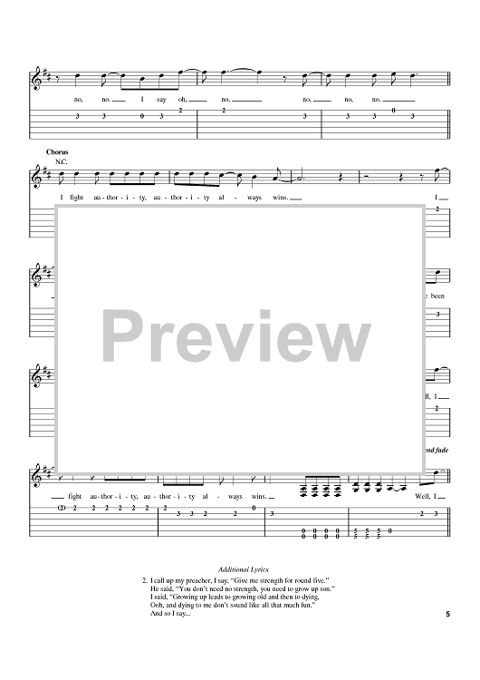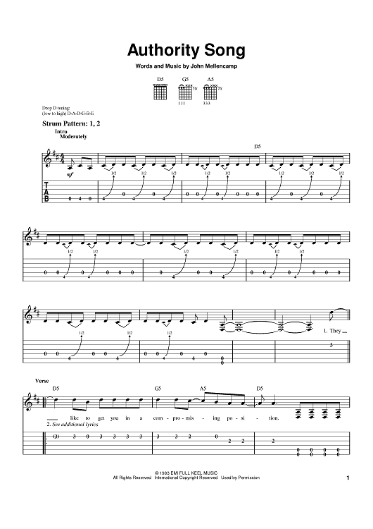 Digital Sheet Music for Authority Song by John Cougar Mellencamp scored for Easy Guitar Tab; id:379194