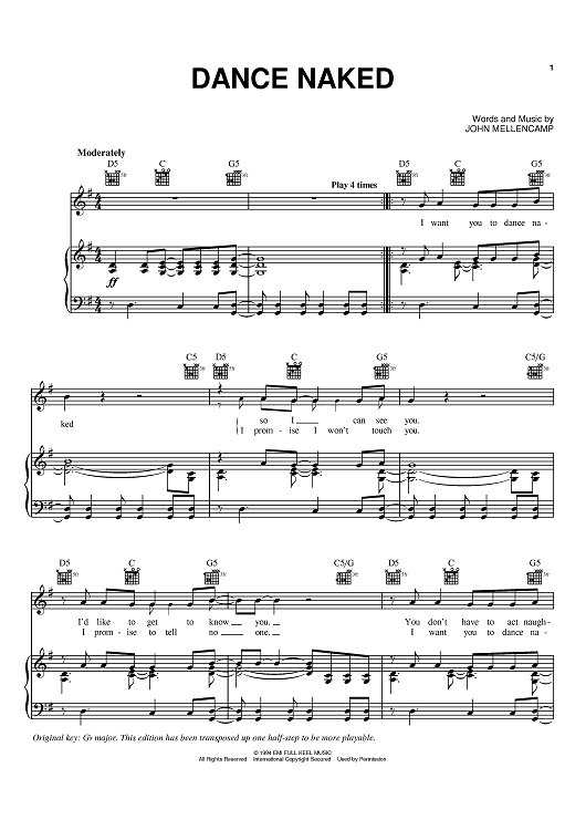 Digital Sheet Music for Dance Naked by John Cougar Mellencamp scored for Piano/Vocal/Chords; id:369219