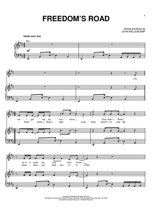 "Freedom's Road" Sheet Music by John Cougar Mellencamp