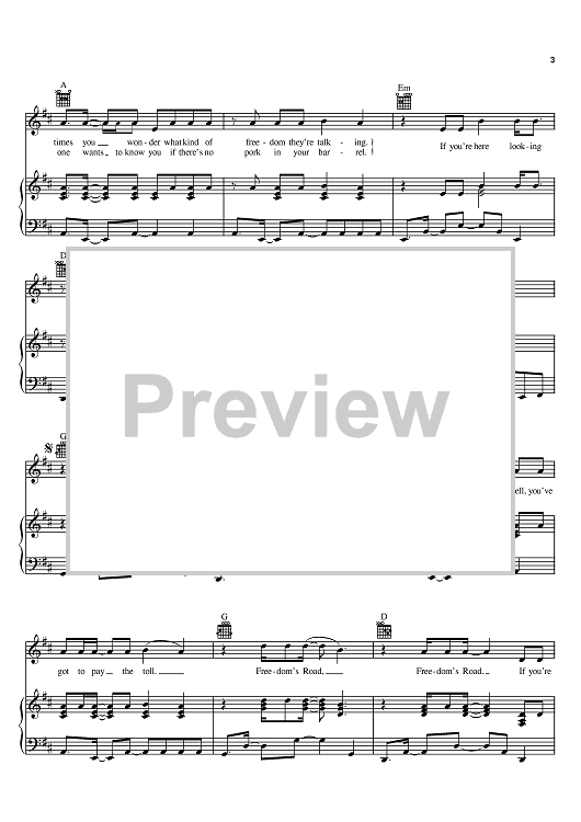 Digital Sheet Music for Freedom's Road by John Cougar Mellencamp scored for Piano/Vocal/Chords; id:397152
