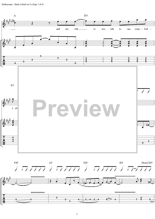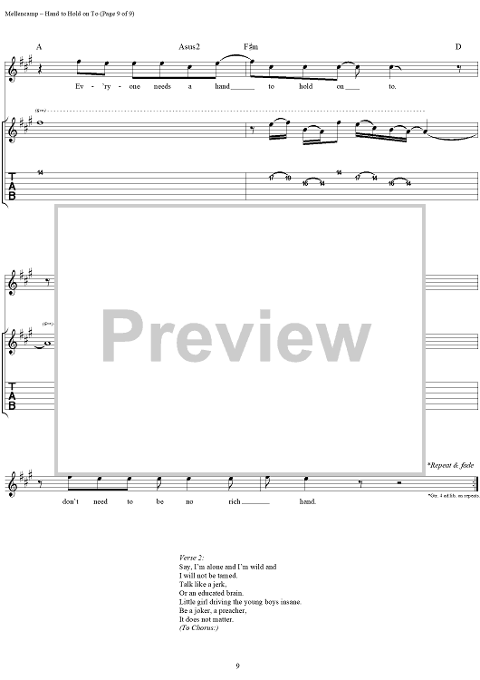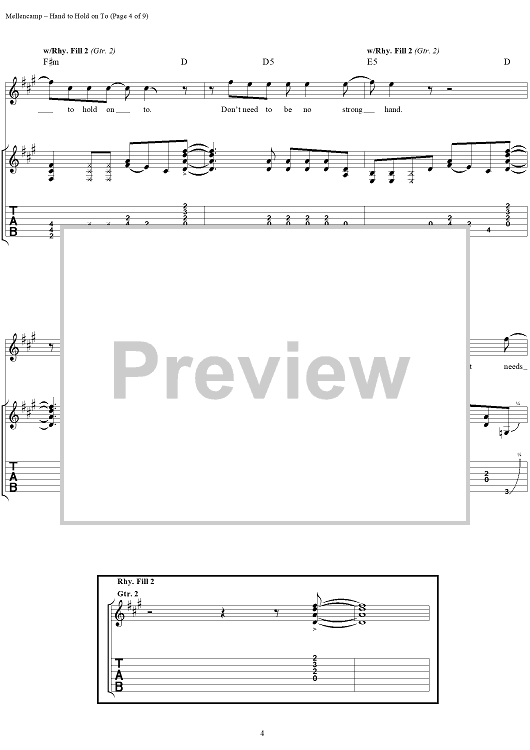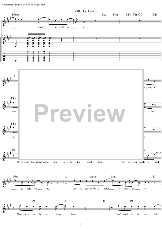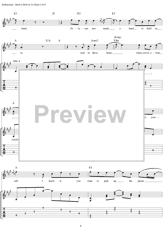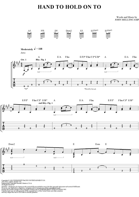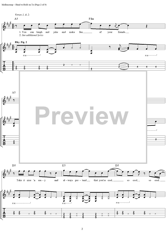 "Hand to Hold On To" Sheet Music by John Cougar Mellencamp
