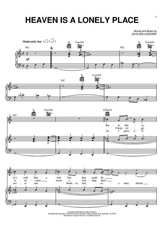 Digital Sheet Music for Heaven Is A Lonely Place by John Cougar Mellencamp scored for Piano/Vocal/Chords; id:397155