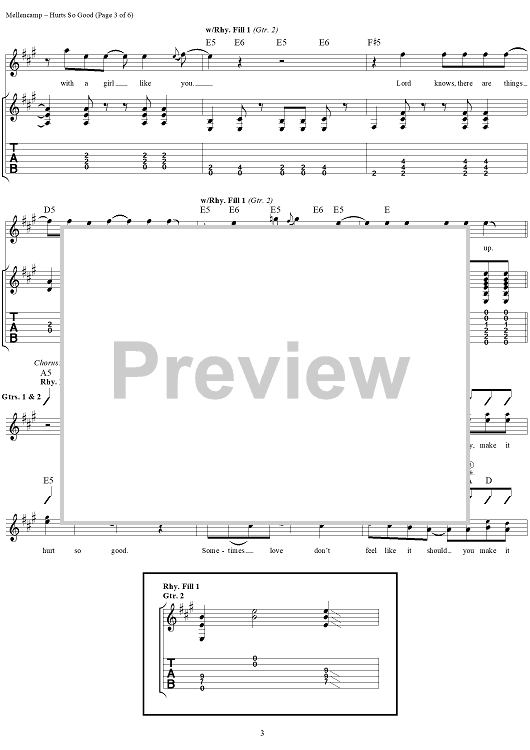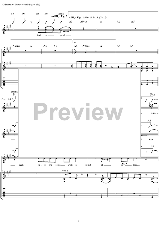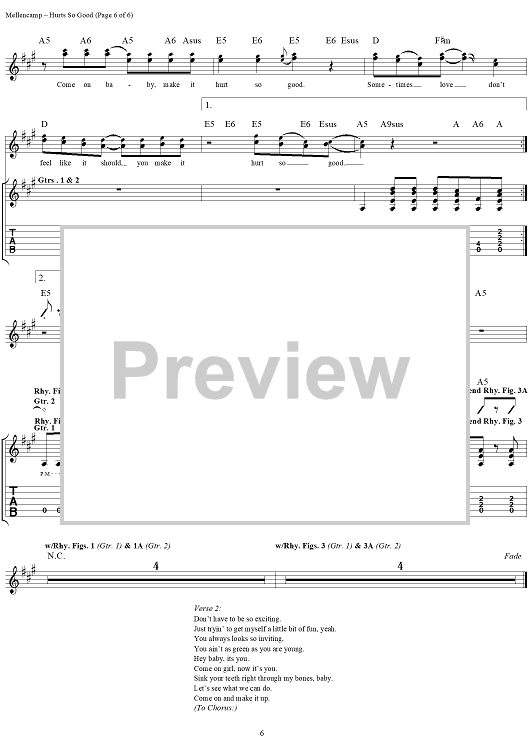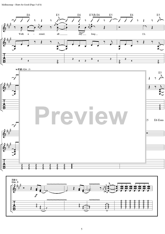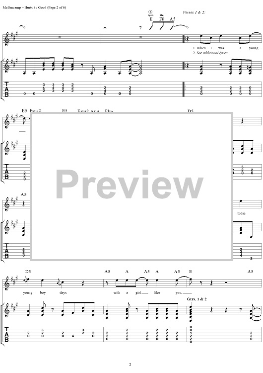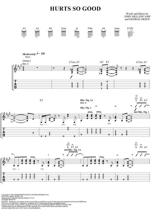 Digital Sheet Music for Hurts So Good by John Cougar Mellencamp, George Green scored for Guitar Tab/Vocal; id:114383