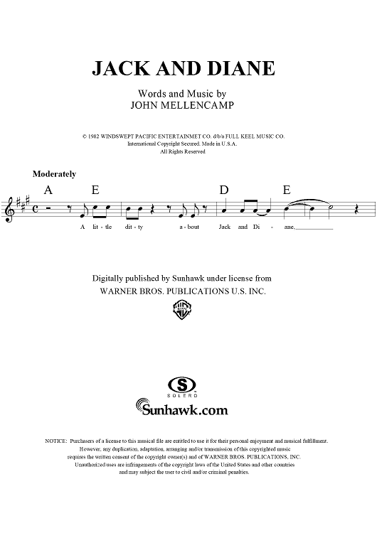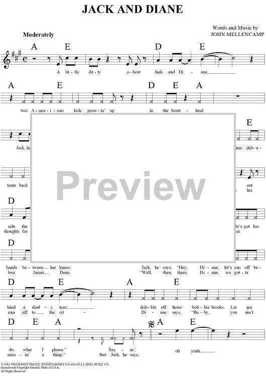 "Jack and Diane" Sheet Music by John Cougar Mellencamp