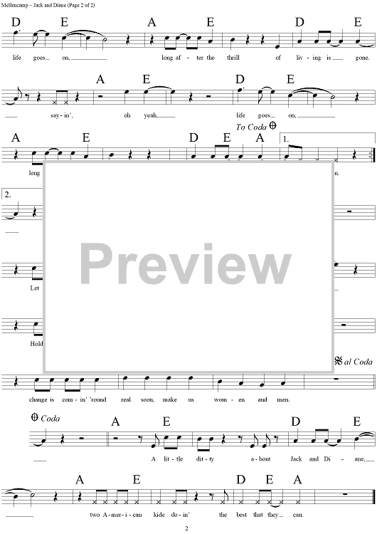 Digital Sheet Music for Jack and Diane by John Cougar Mellencamp scored for Lead Sheet; id:252176
