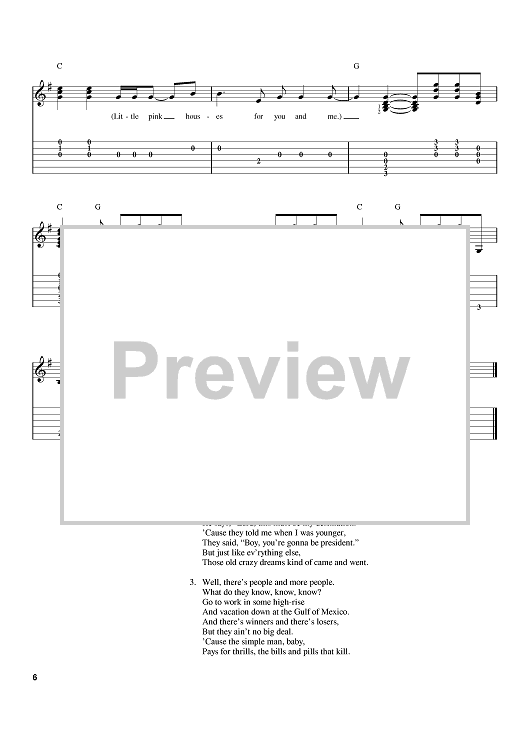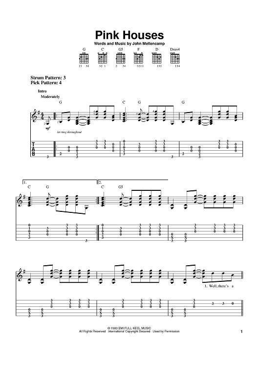 Digital Sheet Music for Pink Houses by John Cougar Mellencamp scored for Easy Guitar Tab; id:379502