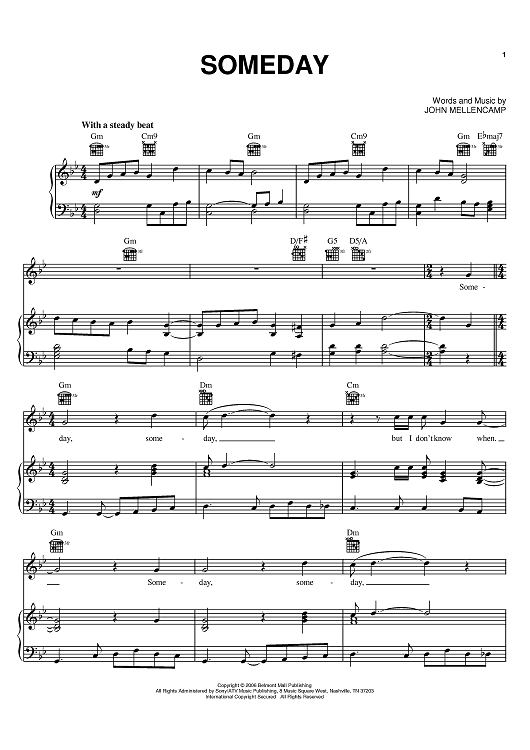 Digital Sheet Music for Someday by John Cougar Mellencamp scored for Piano/Vocal/Chords; id:397148