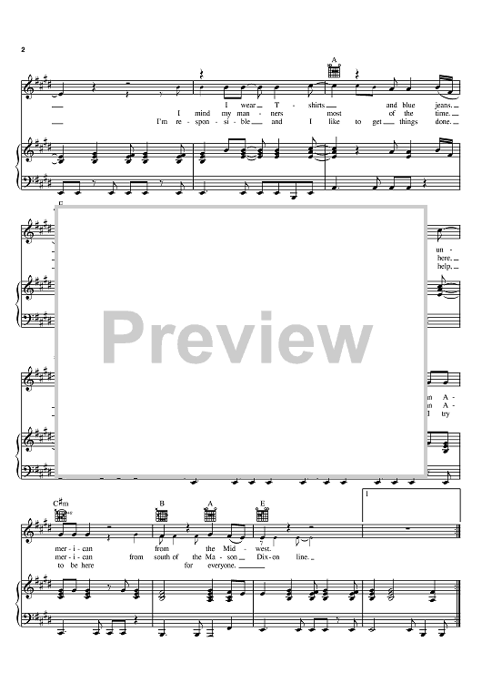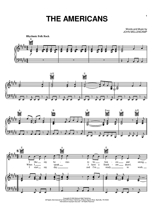 Digital Sheet Music for The Americans by John Cougar Mellencamp scored for Piano/Vocal/Chords; id:397150