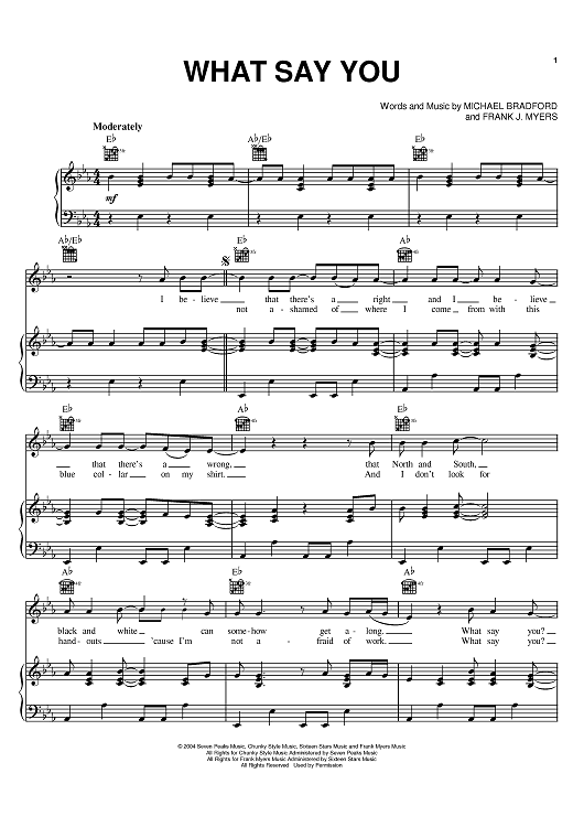Digital Sheet Music for What Say You by Travis Tritt, John Cougar Mellencamp, Frank Myers, Michael Bradford scored for Piano/Vocal/Chords; id:380983