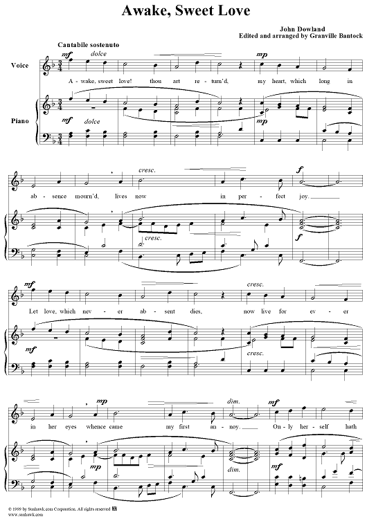 Digital Sheet Music for Awake, Sweet Love by John Dowland, Granville Bantock scored for Voice/Piano; id:270667