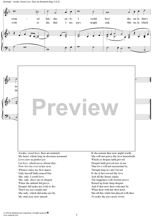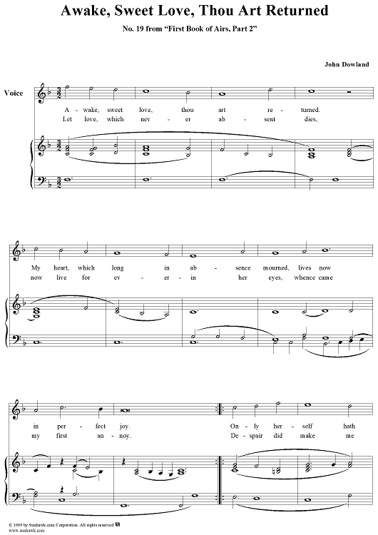 "Awake, sweet love, thou art returned - No. 19 from "First Book of Airs, Part 2"" Sheet Music by John Dowland