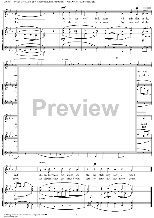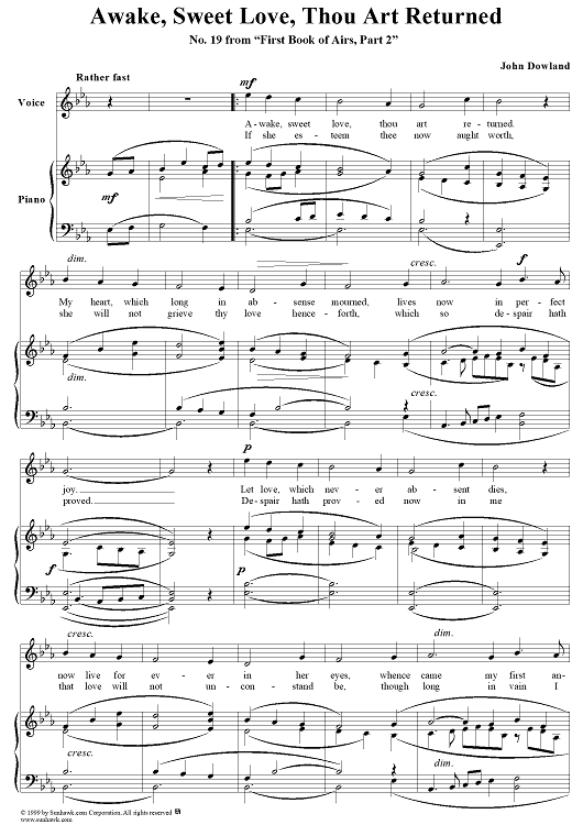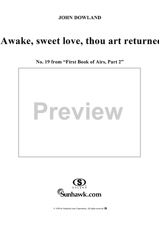 "Awake, sweet love, thou art returned - No. 19 from "First Book of Airs, Part 2"" Sheet Music by John Dowland