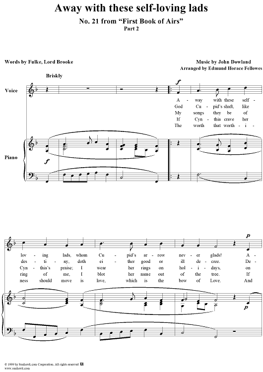 Digital Sheet Music for Away with these self-loving lads - No. 21 from "First Book of Airs, Part 2" by John Dowland, Rev. Edmund Horace Fellowes scored for Voice/Piano; id:270723