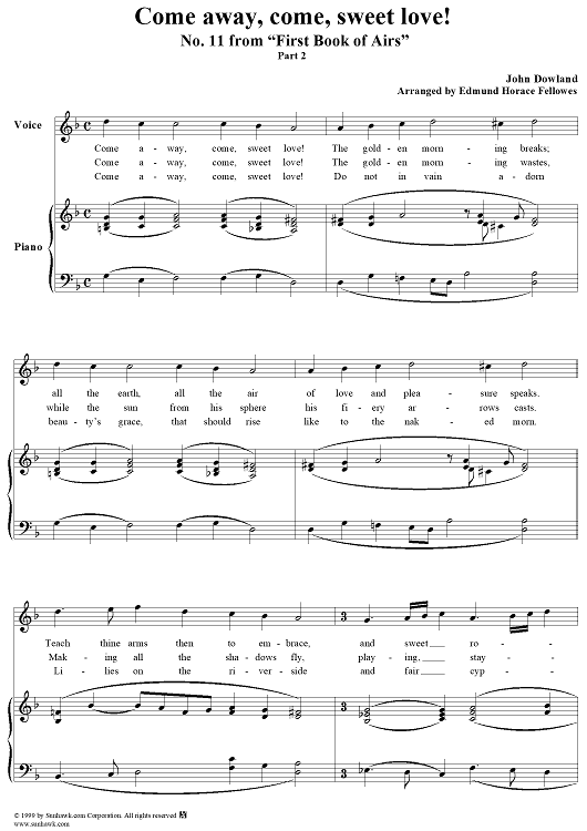 Digital Sheet Music for Come away, come, sweet love! - No. 11 from "First Book of Airs, Part 2" by John Dowland, Rev. Edmund Horace Fellowes scored for Voice/Piano; id:270951