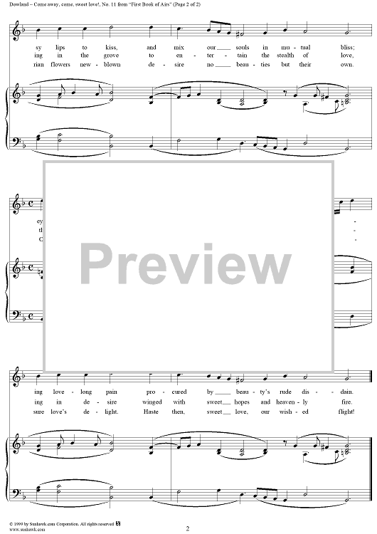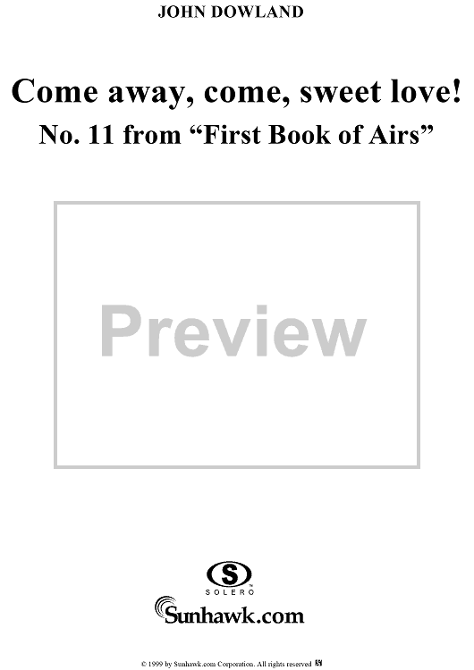"Come away, come, sweet love! - No. 11 from "First Book of Airs, Part 2"" Sheet Music by John Dowland