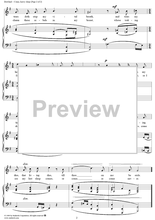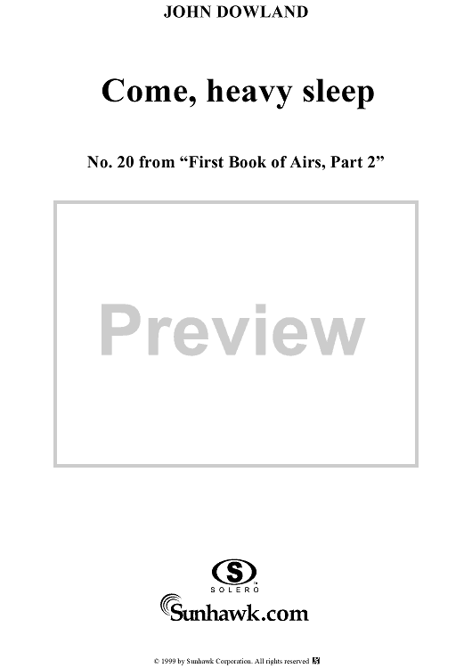 "Come, heavy sleep - No. 20 from "First Book of Airs, Part 2"" Sheet Music by John Dowland