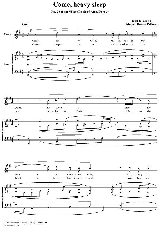 Digital Sheet Music for Come, heavy sleep - No. 20 from "First Book of Airs, Part 2" by John Dowland, Rev. Edmund Horace Fellowes scored for Voice/Piano; id:270727