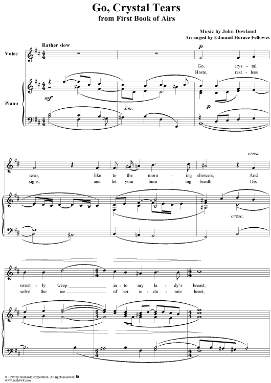 Digital Sheet Music for Go, Crystal Tears by John Dowland, Rev. Edmund Horace Fellowes scored for Voice/Piano; id:113833