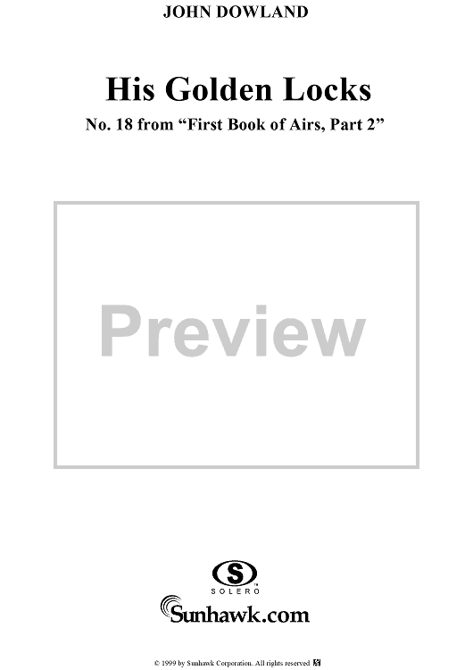 "His golden locks - No. 18 from "First Book of Airs, Part 2"" Sheet Music by John Dowland