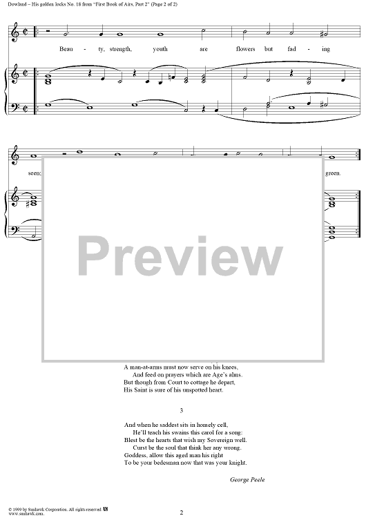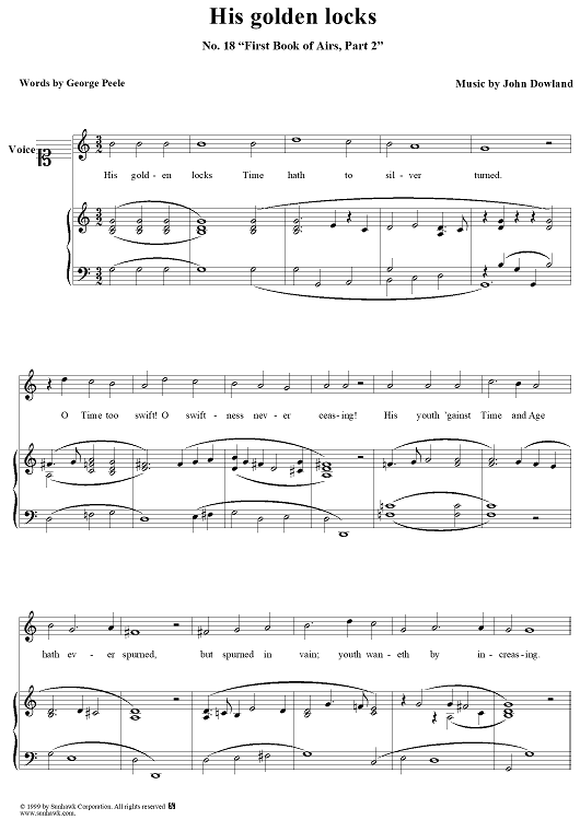 Digital Sheet Music for His golden locks - No. 18 from "First Book of Airs, Part 2" by John Dowland, Rev. Edmund Horace Fellowes scored for Voice/Piano; id:270958