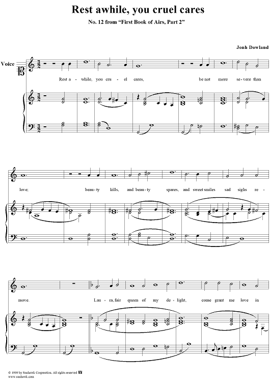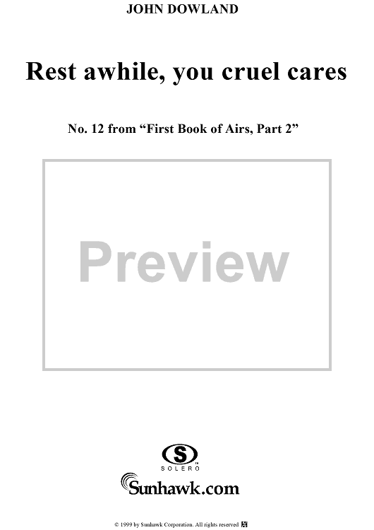 "Rest awhile, you cruel cares - No. 12 from "First Book of Airs, Part 2"" Sheet Music by John Dowland