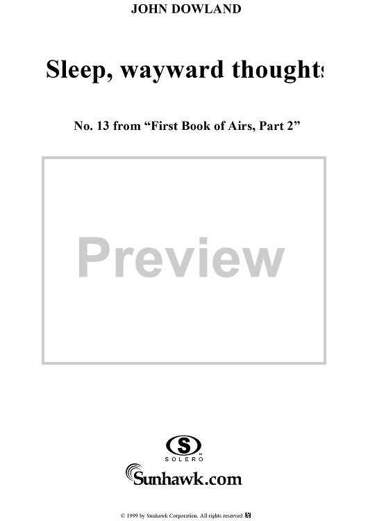 "Sleep, wayward thoughts - No. 13 from "First Book of Airs, Part 2"" Sheet Music by John Dowland