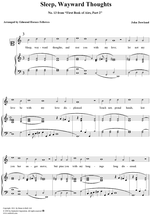 Digital Sheet Music for Sleep, wayward thoughts - No. 13 from "First Book of Airs, Part 2" by John Dowland, Rev. Edmund Horace Fellowes scored for Voice/Piano; id:270956