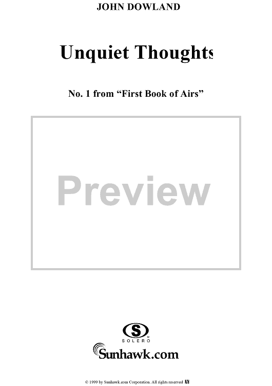 "Unquiet Thoughts - No. 1 from "First Book of Airs, Part 1"" Sheet Music by John Dowland