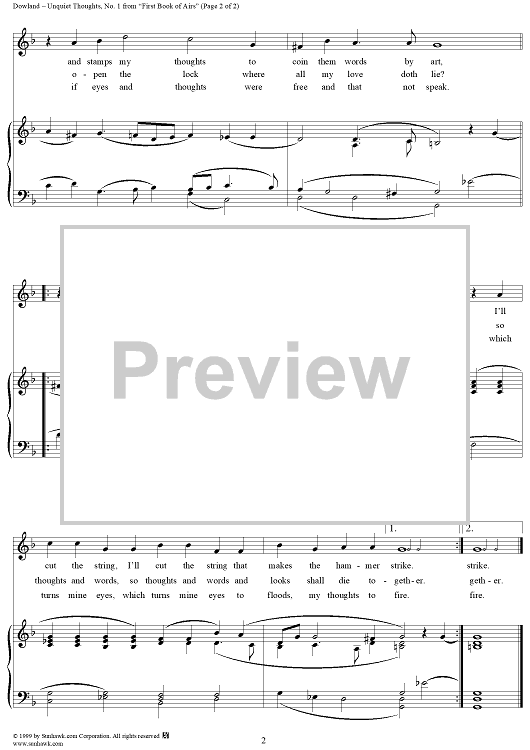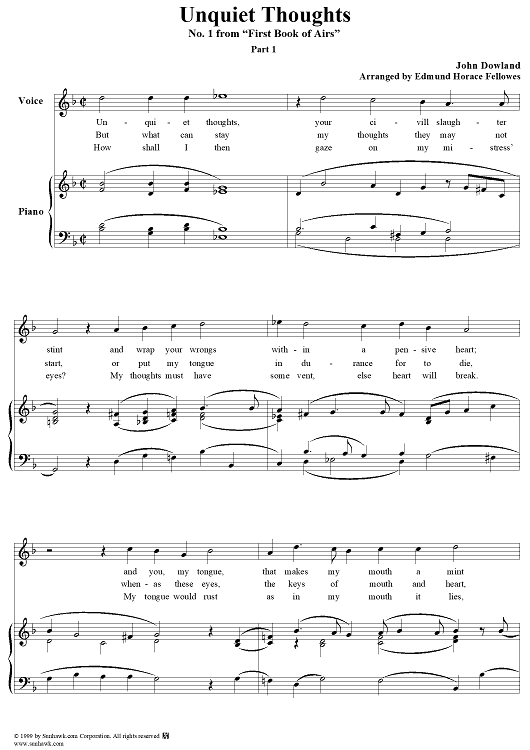 Digital Sheet Music for Unquiet Thoughts - No. 1 from "First Book of Airs, Part 1" by John Dowland, Rev. Edmund Horace Fellowes scored for Voice/Piano; id:270691
