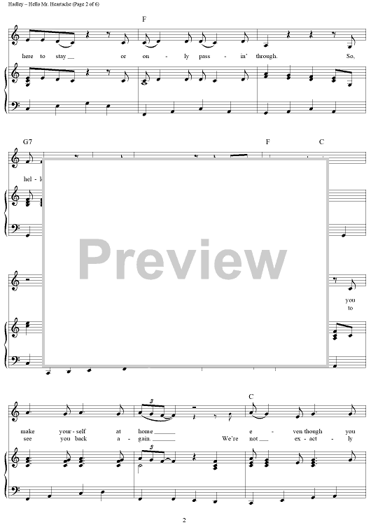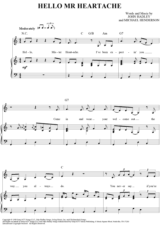 Digital Sheet Music for Hello Mr. Heartache by The Chicks, Michael Henderson, John Hadley scored for Piano/Vocal/Chords; id:365436