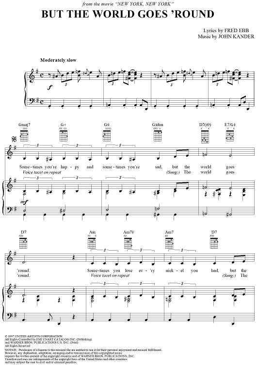 Digital Sheet Music for But the World Goes 'Round by John Kander, Fred Ebb scored for Piano/Vocal/Chords; id:266354
