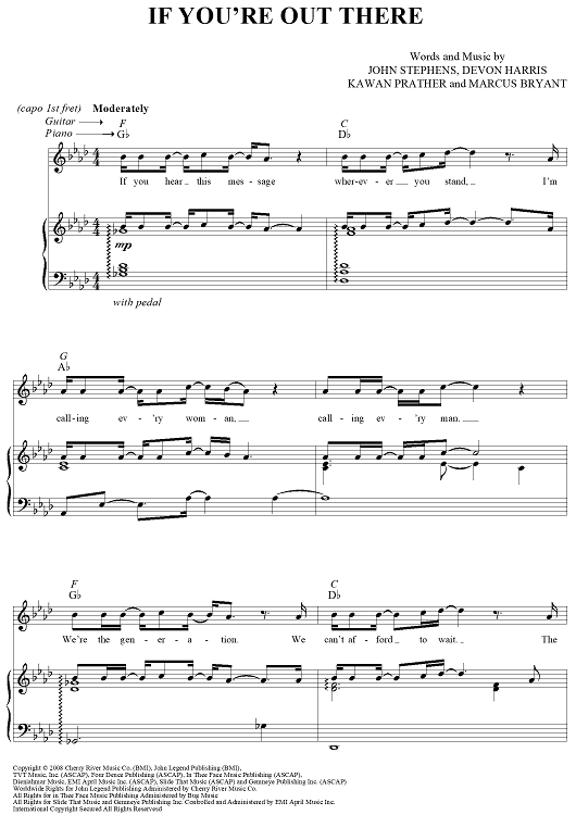 Digital Sheet Music for If You're Out There by John Legend, DeVon Harris, Kawan Prather, Marcus Bryant scored for Piano/Vocal/Chords; id:441312