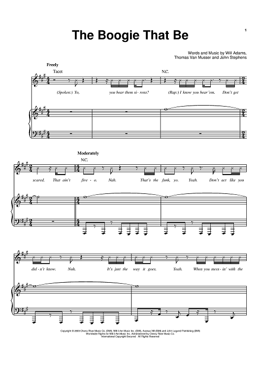 Digital Sheet Music for The Boogie That Be by John Legend, will.i.am, Black Eyed Peas, Thomas Van Musser scored for Piano/Vocal/Chords; id:373651
