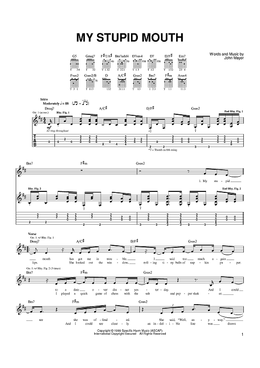 Digital Sheet Music for My Stupid Mouth by John Mayer scored for Easy Guitar; id:373208