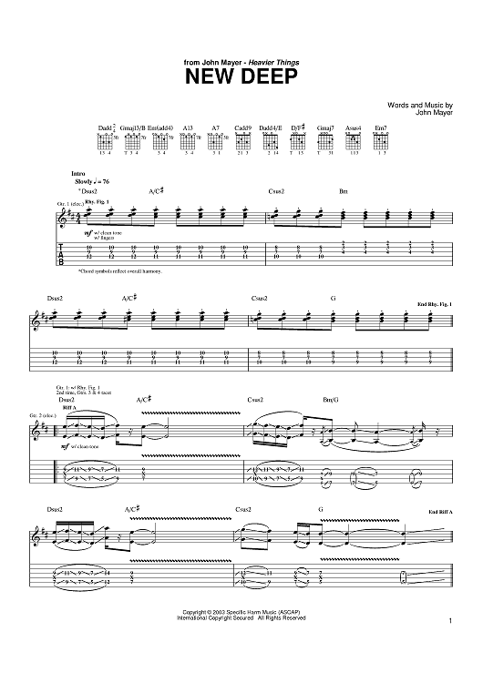Digital Sheet Music for New Deep by John Mayer scored for Guitar Tab; id:374679