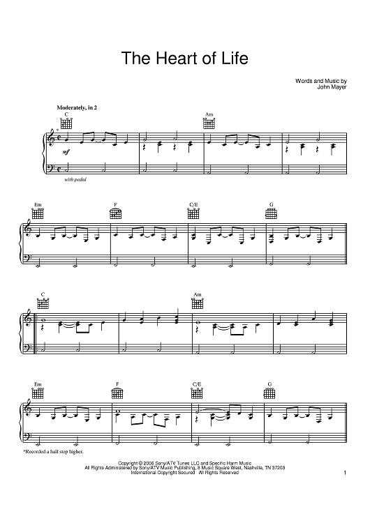 Digital Sheet Music for The Heart Of Life by John Mayer scored for Piano/Vocal/Chords; id:396100