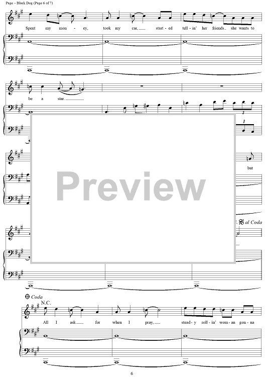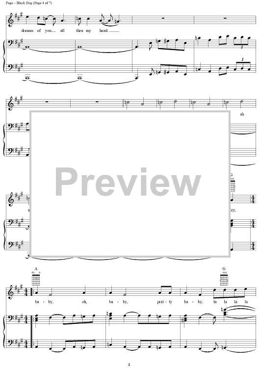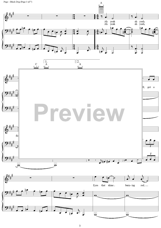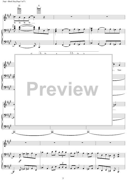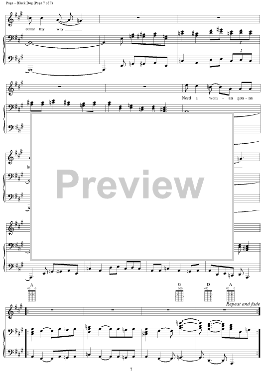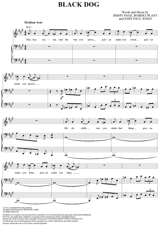 Digital Sheet Music for Black Dog by Jimmy Page, John Paul Jones, Led Zeppelin, Robert Plant scored for Piano/Vocal/Chords; id:119807