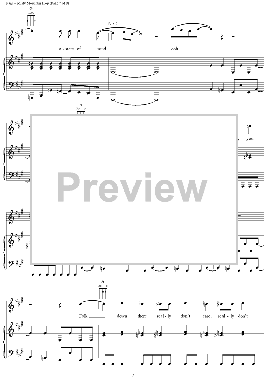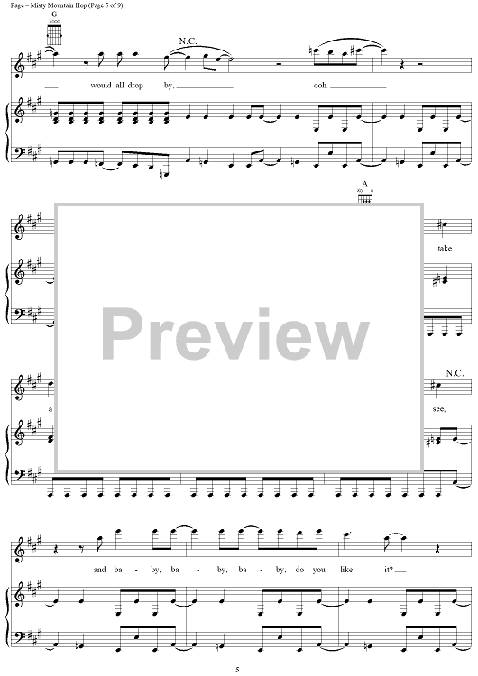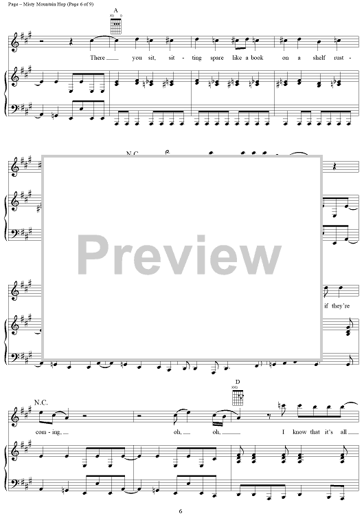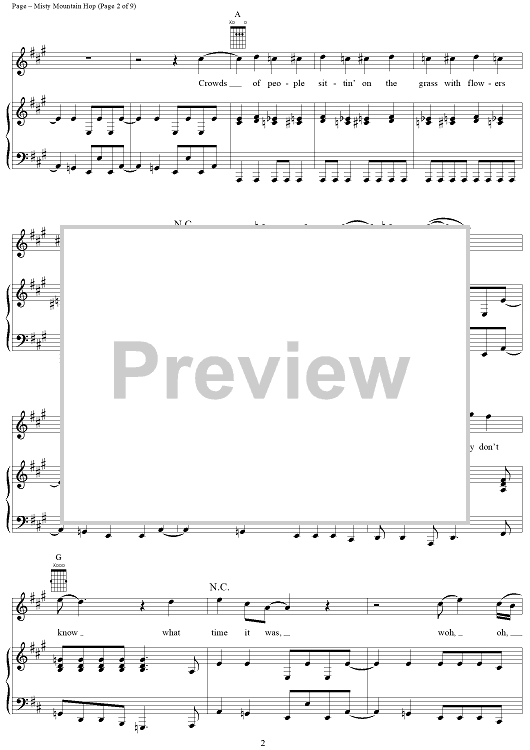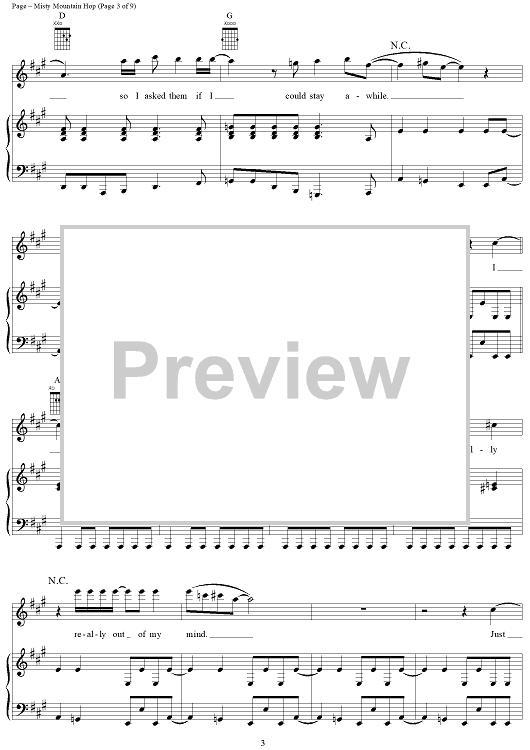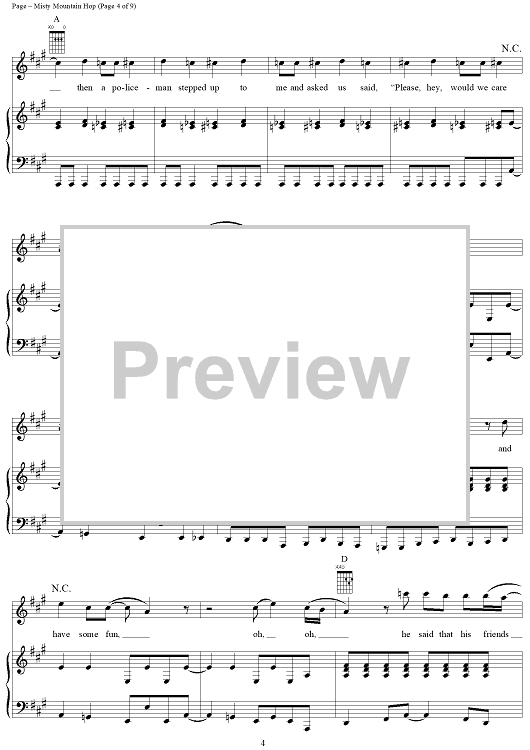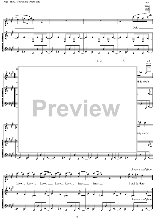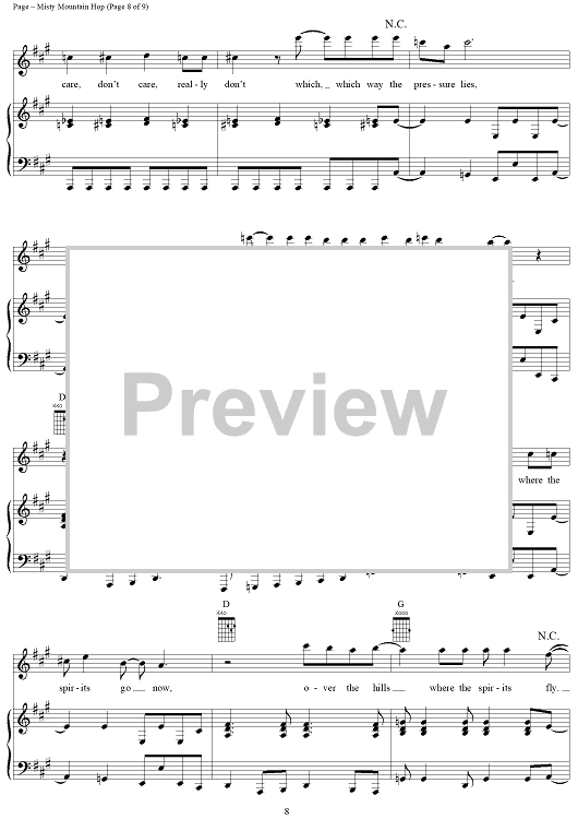 Digital Sheet Music for Misty Mountain Hop by Jimmy Page, John Paul Jones, Led Zeppelin, Robert Plant scored for Piano/Vocal/Chords; id:240916