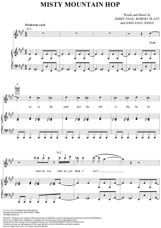"Misty Mountain Hop" Sheet Music by Led Zeppelin