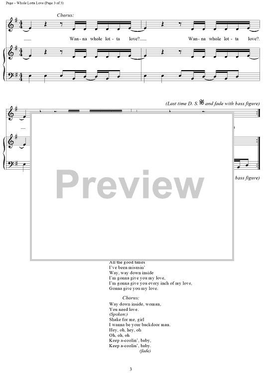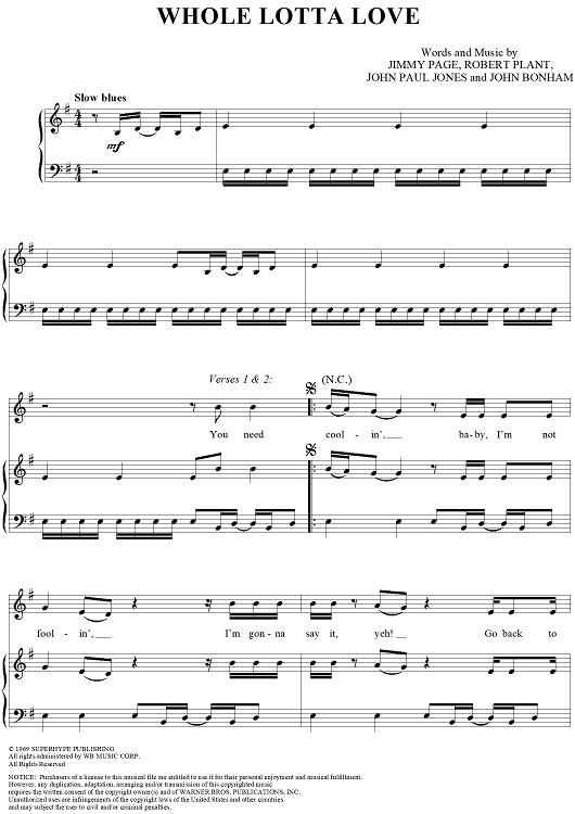 Digital Sheet Music for Whole Lotta Love by Jimmy Page, John Paul Jones, John Bonham, Led Zeppelin, Robert Plant scored for Piano/Vocal/Chords; id:119853