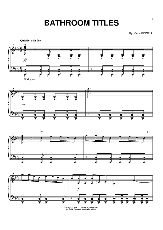 Digital Sheet Music for Bathroom Titles by John Powell scored for Piano; id:391681