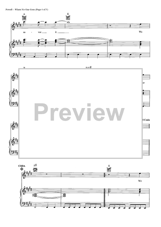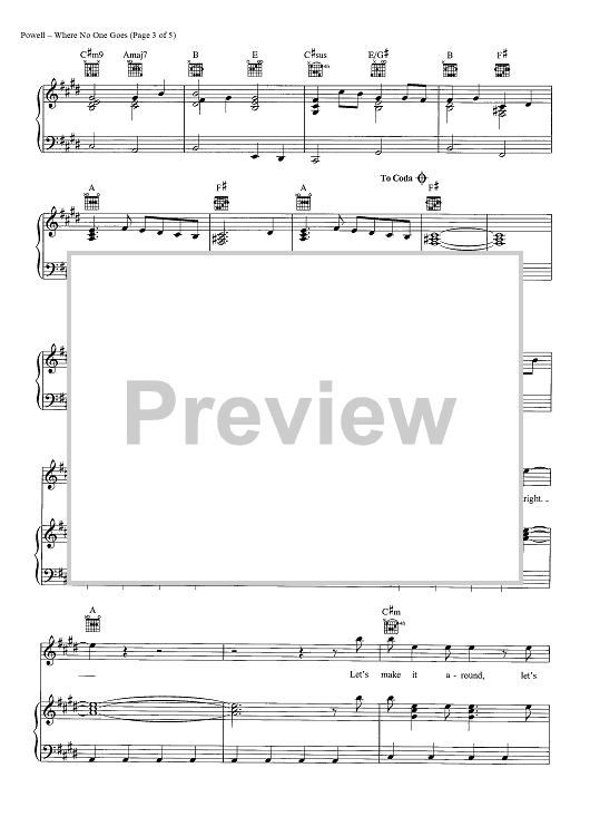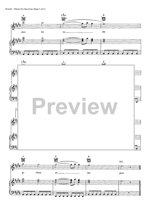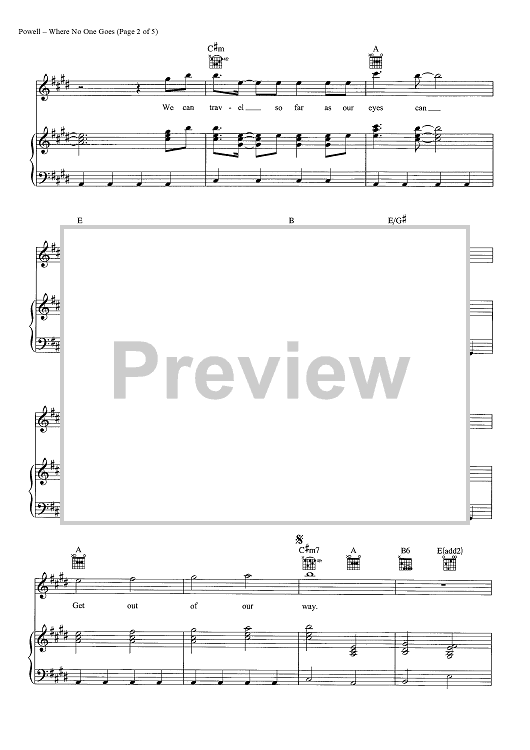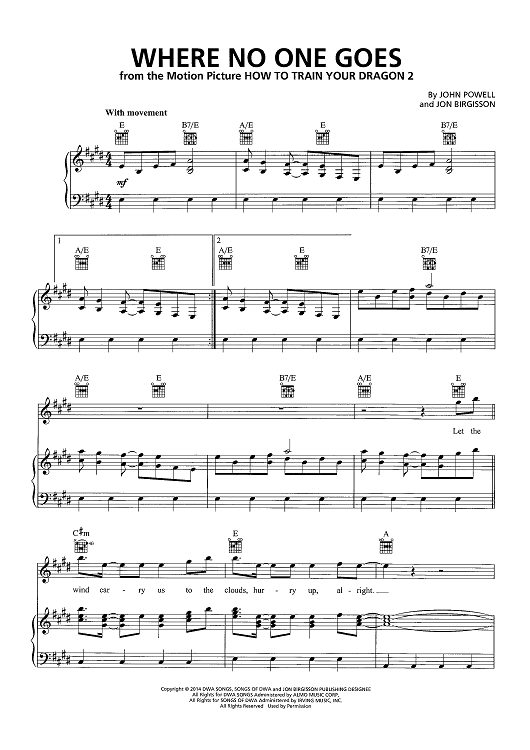 Digital Sheet Music for Where No One Goes by Jon Birgisson, John Powell scored for Piano/Vocal/Chords; id:449147