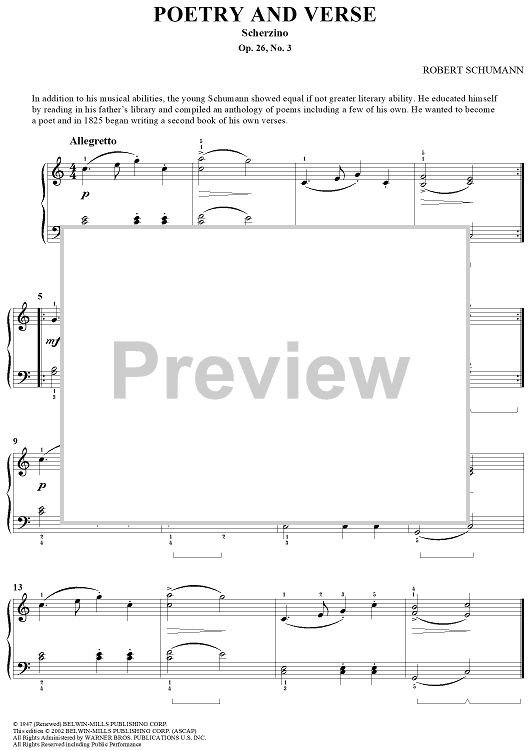 Digital Sheet Music for Poetry and Verse (Scherzino, Op. 26, No. 3) by John W. Schaum, Robert Schumann scored for Piano Solo; id:296144