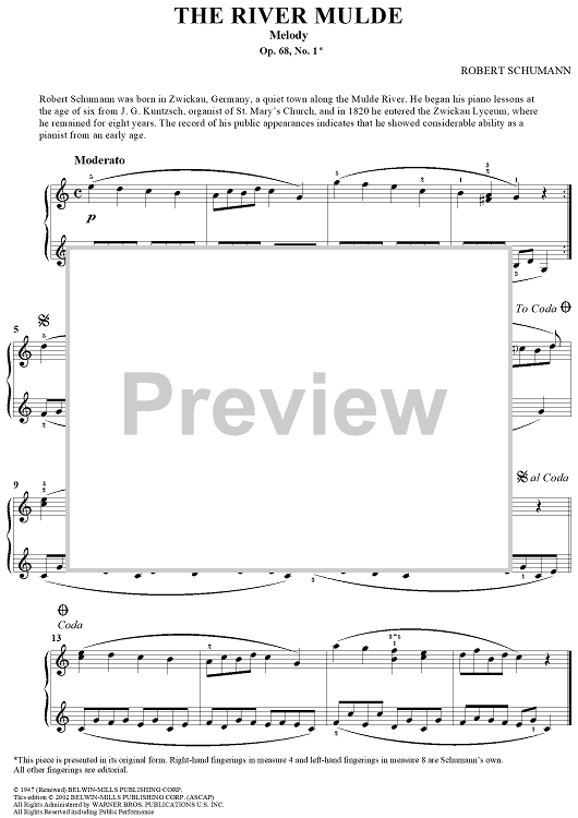 Digital Sheet Music for The River Mulde (Melody, Op. 68, No. 1) by John W. Schaum, Robert Schumann scored for Piano Solo; id:296142