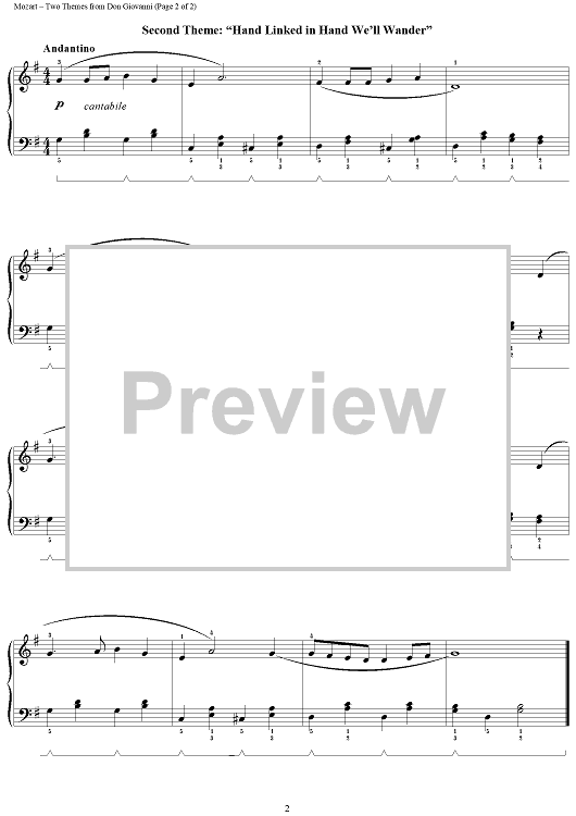 "Two Themes from Don Giovanni (from the opera Don Juan)" Sheet Music by Wolfgang Amadeus Mozart