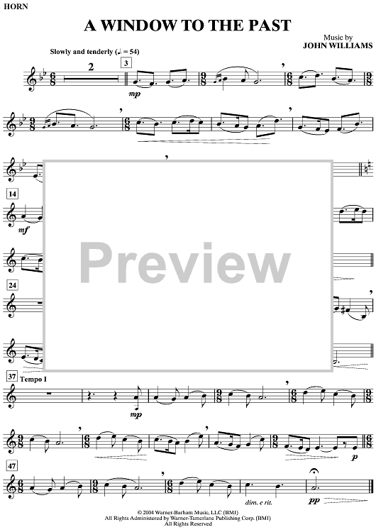 Digital Sheet Music for A Window to the Past by John Williams scored for Horn/Piano; id:498131