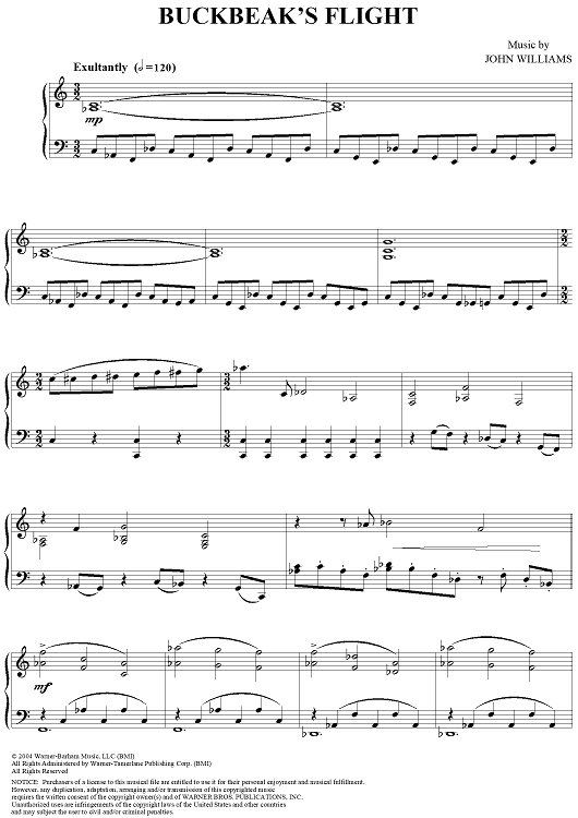 Digital Sheet Music for Buckbeak's Flight by John Williams scored for Piano Solo; id:311498